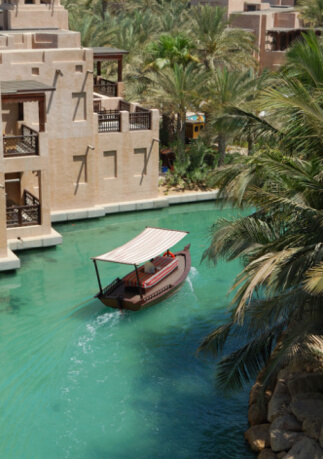 Book your flight on Emirates Airline and experience abra rides, souks and more in Dubai.